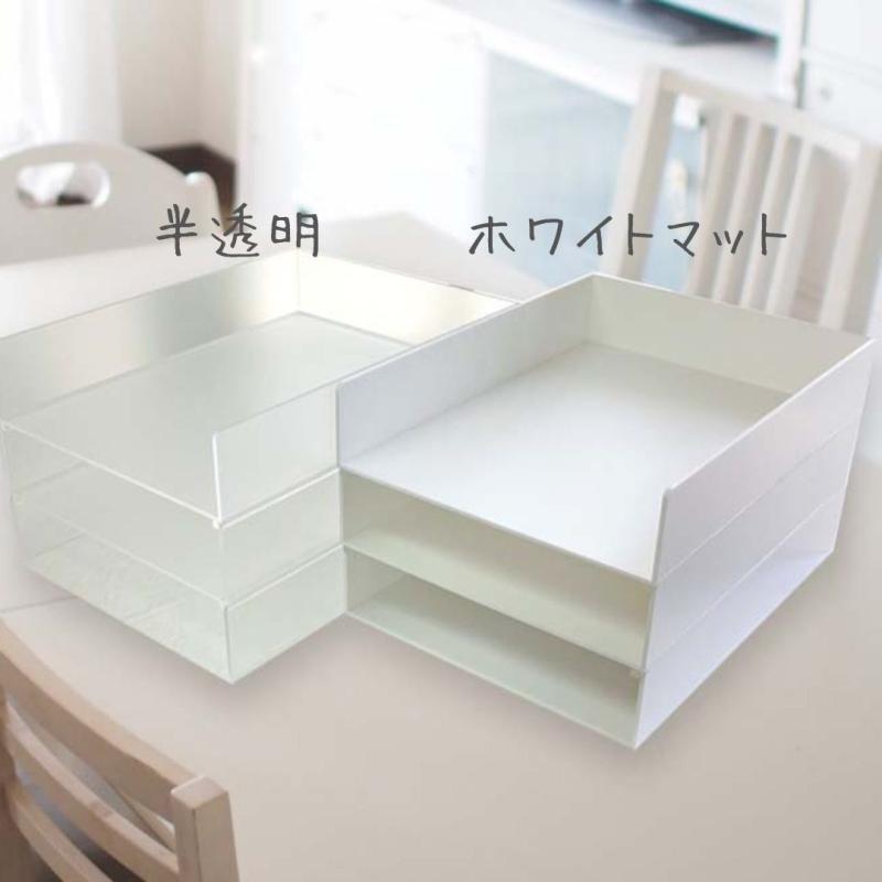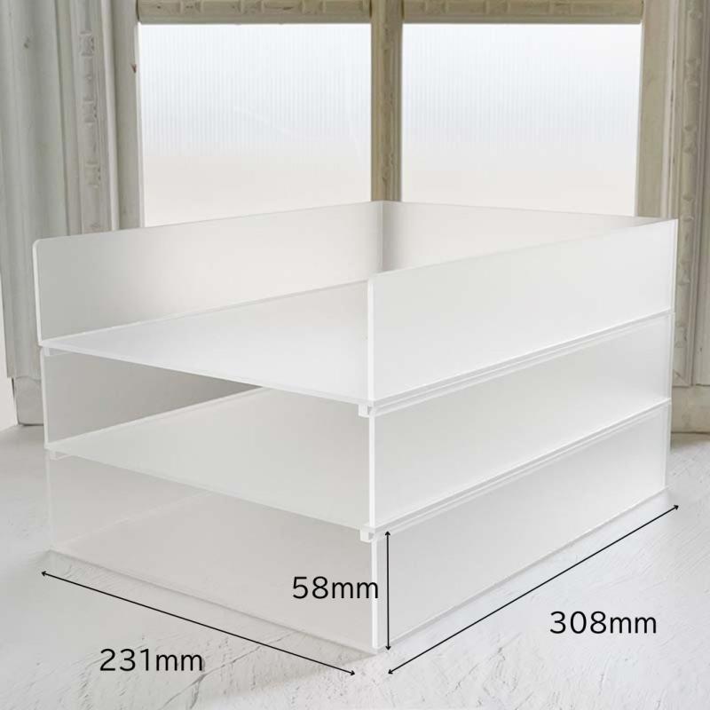 アクリル製トレー3段 (上段・中段にスタッキング用凸有。下段は平面)