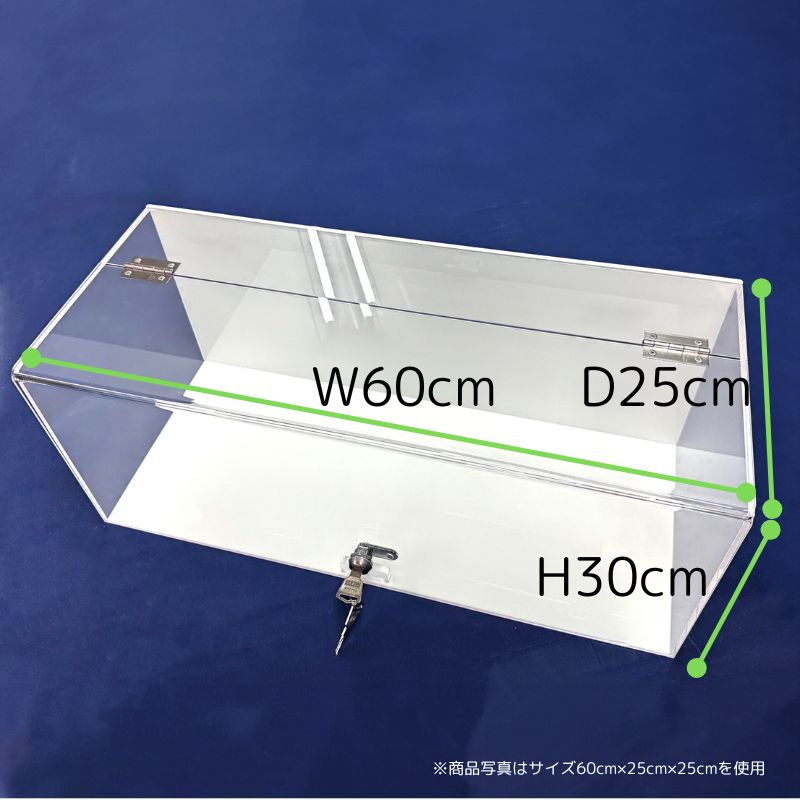 ・車・飛行機・船などの大型模型の展示に ・雛人形・五月人形などの日本人形の展示に ・開閉姿が美しいウイング式の扉 ・扉のL字部分はツヤが綺麗な曲げ加工仕上げ ・付属の背面ミラーでコレクションの後ろ姿も楽しめる ・カラーバリエーション豊富 < オーダー製作 > サイズオーダーも承っております。 お問い合わせよりお気軽にご相談ください。 < 商品仕様 > < サイズ > 幅60cm×奥行25cm×高さ30cm < カバー部(扉・天板・側板)カラー > ・透明 ・ガラスカラー < 背板・底板カラー > ・透明 ・ガラスカラー ・ホワイト(ツヤあり) ・ブラック(マット) < カギ > 有り・無し ※カギ無しはツマミ付き < 背面ミラー > 背面ミラー1枚付き(脱着可能) < 蝶番 > 2個 < セット内容 > ・アクリルウイング式コレクションケース 1台 ・内部背面用ミラー(両面テープ付) 1枚 ※カギ有りご購入の場合 ・カギ 2本 < 納期 > ご注文・ご入金確認後7営業日(土日祝・臨時休業等除く)以内に出荷いたします ※7日以内ではありません ※大量注文の場合は、表記に関わらず納期ご相談となります ※お急ぎの方はご注文前にご相談ください < お手入れ方法・その他 > 汚れた場合や、静電気の抑え方はこちら