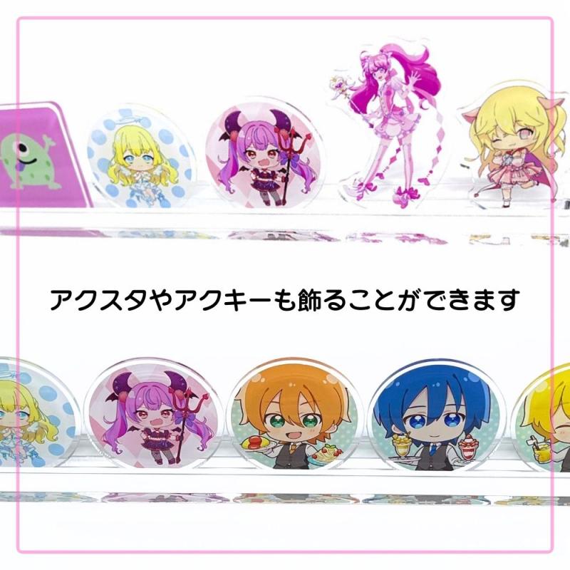 国産の高品質アクリルで製作されており、シンプルなデザインが缶バッジを引き立てます。 アクリルスタンドやアクリルキーホルダーもディスプレイでき、推し活グッズとして大切なコレクションを美しく飾ることができます。 シンプルながらも洗練されたデザインで、どんな空間にもマッチします。 < 商品仕様 > 1個タイプ 5.5cm×3cm 2個タイプ 14cm×3cm ロングタイプ 30cm×cm < 板厚 > 8mm < カラー > 透明 < お支払方法 > 代金引換はご利用いただけません。 < 納期 > ご注文・ご入金確認後6営業日(土日祝・臨時休業等除く)以内に出荷いたします ※6日以内ではありません ※大量注文の場合は、表記に関わらず納期ご相談となります ※お急ぎの方はご注文前にご相談ください < お手入れ方法・その他 > ・汚れた場合や、静電気の抑え方はこちら ・レーザーカットの加工上、アクリルが曇る場合があります。製作上少なからず発生する内容のため、一定の基準までは仕様となりますので納品させていただきます。