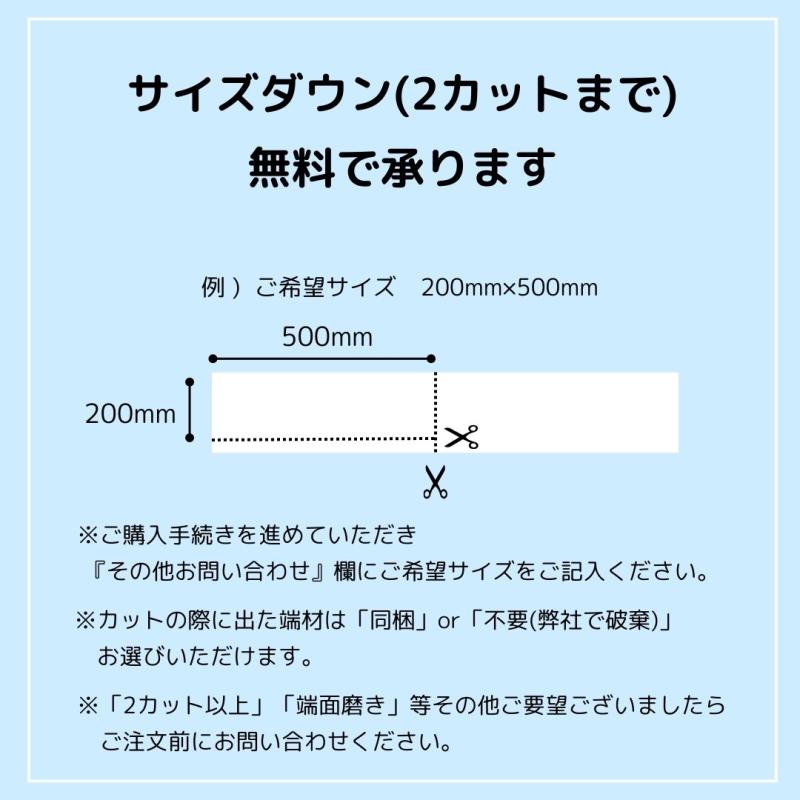 < 商品仕様 > < サイズ > 220mm×1020mm < 板厚 > 5mm < メーカー型番 > カナセライト 1010 < 端面 > 磨き等なし < サイズダウン承ります > サイズダウン(2カットまで)無料で承ります! ※ご購入手続きを進めていただき、『その他お問い合わせ』欄にご希望サイズをご記入ください ※カットの際に出た端材は「同梱」or「不要」お選びいただけます ※「2カット以上」「端面磨き」などその他ご要望ございましたらご注文前にお問い合わせください < 納期 > ご注文・ご入金確認後3営業日(土日祝・臨時休業等除く)以内に出荷いたします。 ※3日以内ではありません ※お急ぎの方はご注文前にご相談ください